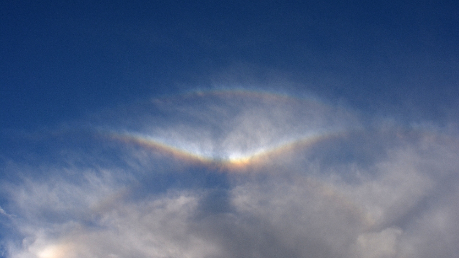 Der Parrybogen ist entstehungsbedingt rein spektral und wesentlich bunter als der Obere Berührungsbogen.